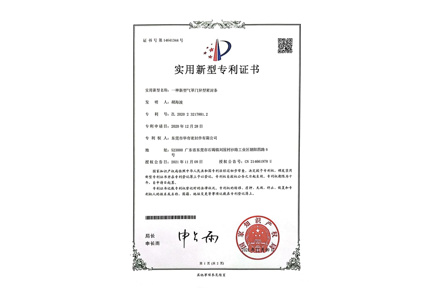 專利證書(shū)